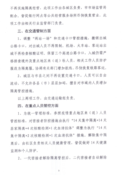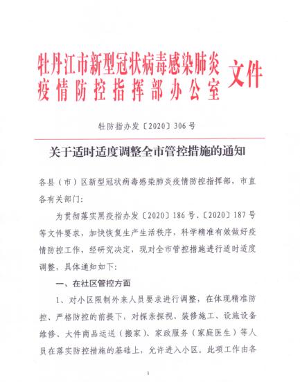 關(guān)于適時適度調(diào)整全市管控措施的通知
